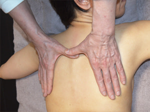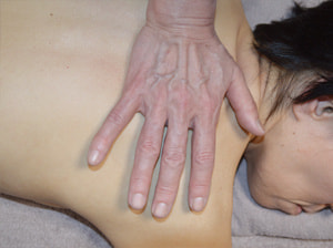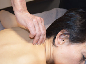 小鼻横から鼻筋をとおり、そのまま毛髪の生え際、頭皮の真ん中、後頭部、首筋、背骨を炭酸オイルで丹念に流していきます。