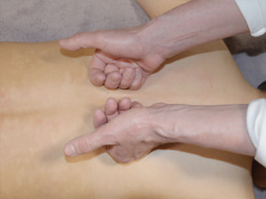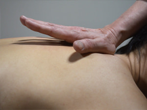 小鼻横から鼻筋をとおり、そのまま毛髪の生え際、頭皮の真ん中、後頭部、首筋、背骨を炭酸オイルで丹念に流していきます。